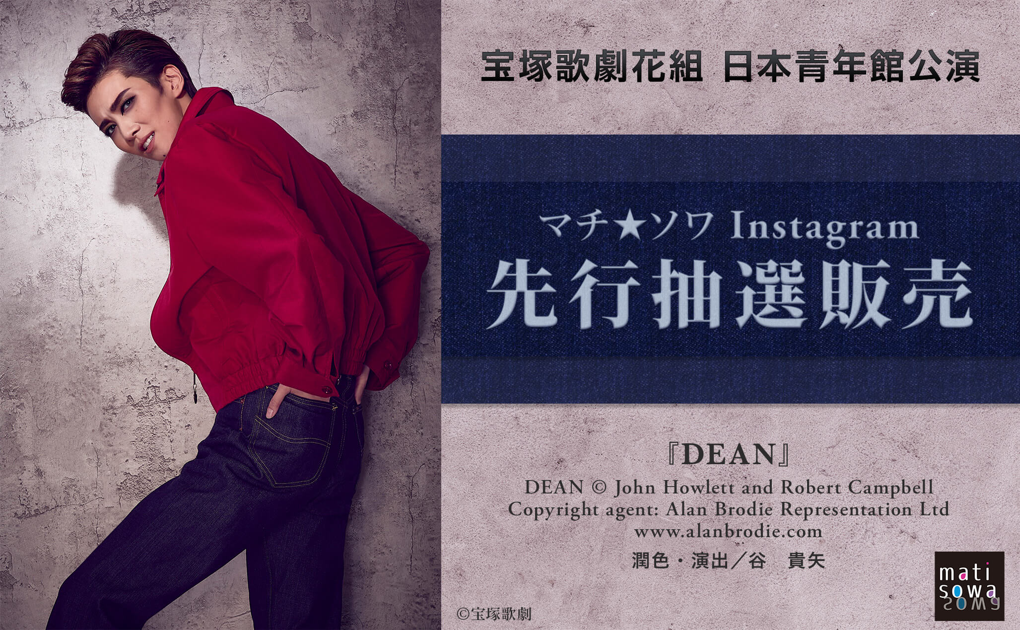 1976年にロンドンで初演、1981年に大地真央主演で宝塚バウホールにて上演し、鮮烈な印象を残した伝説的作品『ディーン』。その後、1991年に安寿ミラ、1998年に絵麻緒ゆう主演で再演され、いずれも好評を博した名作ミュージカルが、谷貴矢による新たな潤色・演出で27年振りに甦ります。1950年代、ハリウッド映画界に彗星の如く現れ、わずか3作の主演作を残し夭折した稀代のスター、ジェームス・ディーン。不安や孤独を抱え、自分を満たしてくれる何かを探し求めたその素顔に迫り、青春の象徴と謳われるディーンの姿を舞台上に鮮烈に息づかせます。