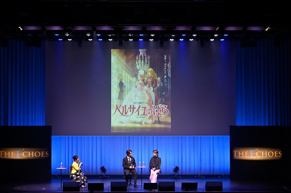 宝塚歌劇で彩風さんはフェルゼンを、加藤さんは劇場アニメ版でフェルゼンの声優をそれぞれ演じられたおふたりは、今年1月に行われた劇場アニメ版の世界最速上映会以来の再会。