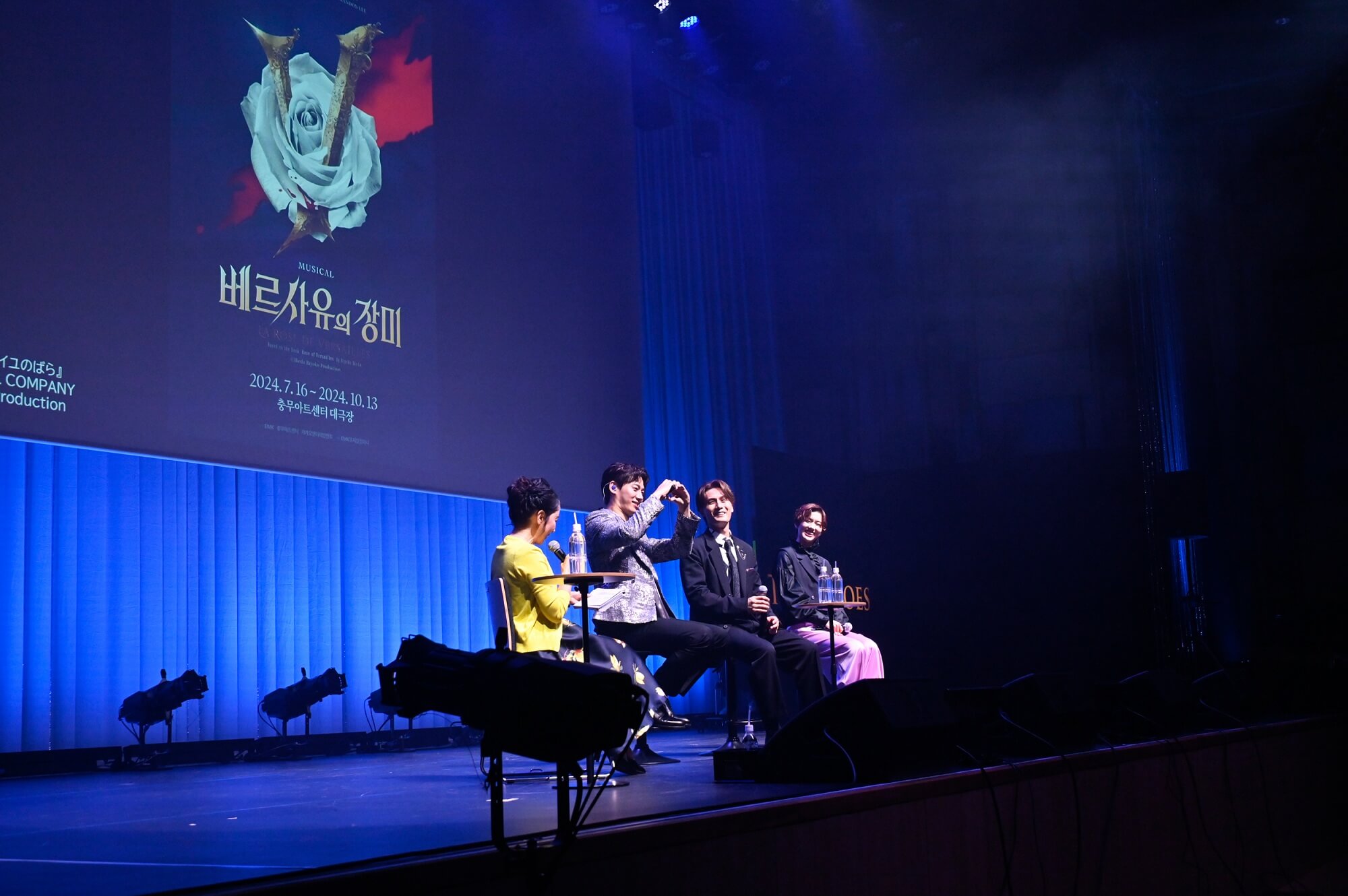 イベントは「テダム」コーナーの後、ゲストの彩風咲奈さんをお招きしての後半戦へ。その模様も少しだけご紹介しましょう。こちらでは彩風さん、加藤さん、ソンシクさんのお三方に共通する作品『ベルサイユのばら』をメインテーマに、歌を交えての和やかなトークが展開しました。
