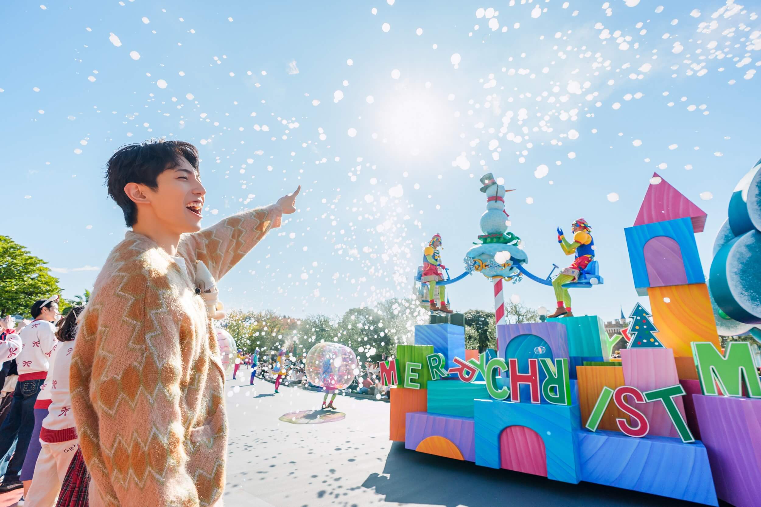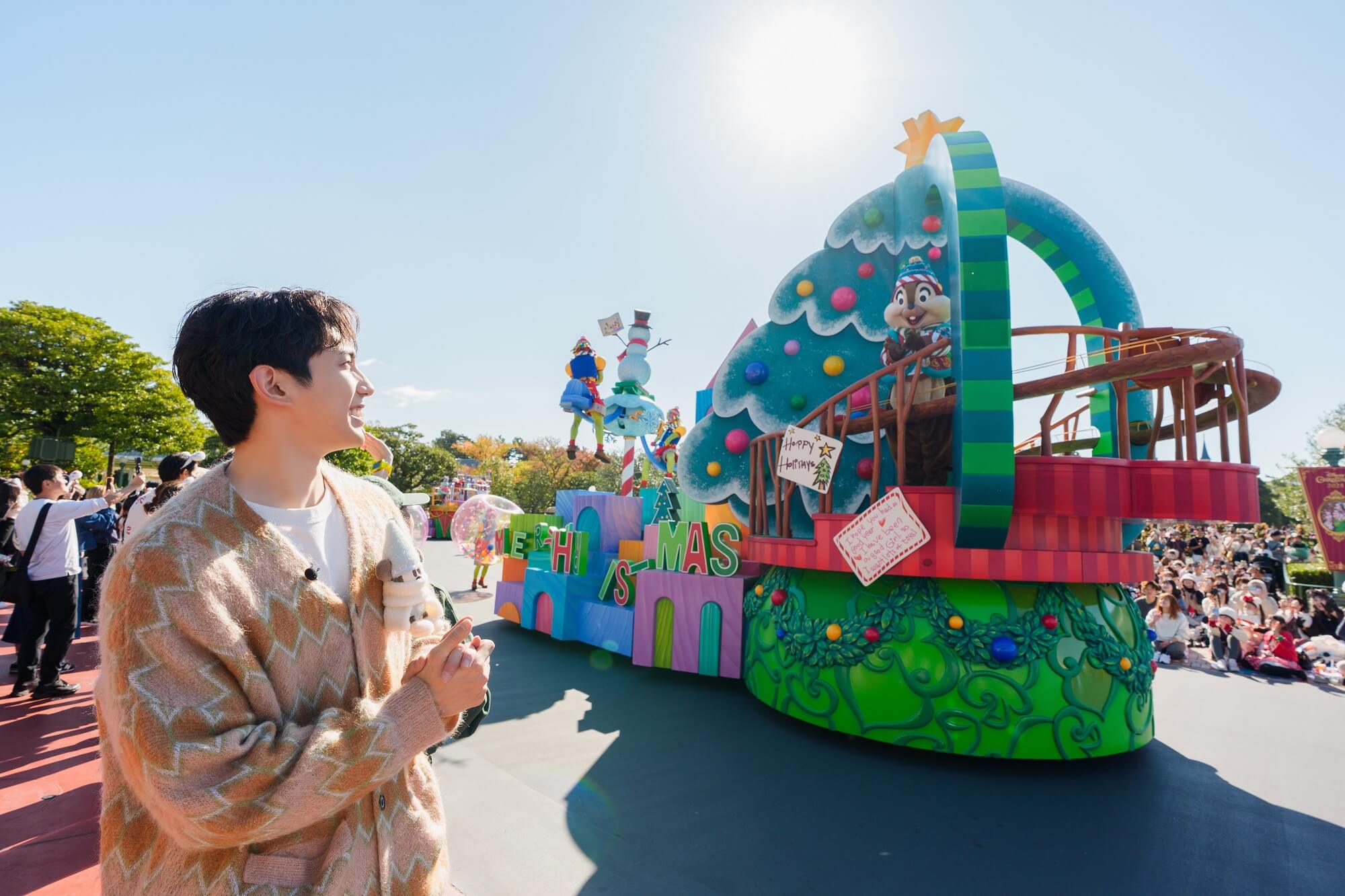撮影/黒澤義教サンタクロースのトイファクトリーに届く手紙に書かれた子どもたちの願いを叶えるため、サンタクロースとエルフたちによって生み出されたおもちゃたちがディズニーの仲間たちとともにゲストと一緒に楽しく遊ぶ愉快でマジカルなパレードを、クリスマスが大好きな有澤さんが体験。実は有澤さん、東京ディズニーランドのパレードを観るのは初めて。懐かしい思い出とともに、パレードを楽しまれたようです。