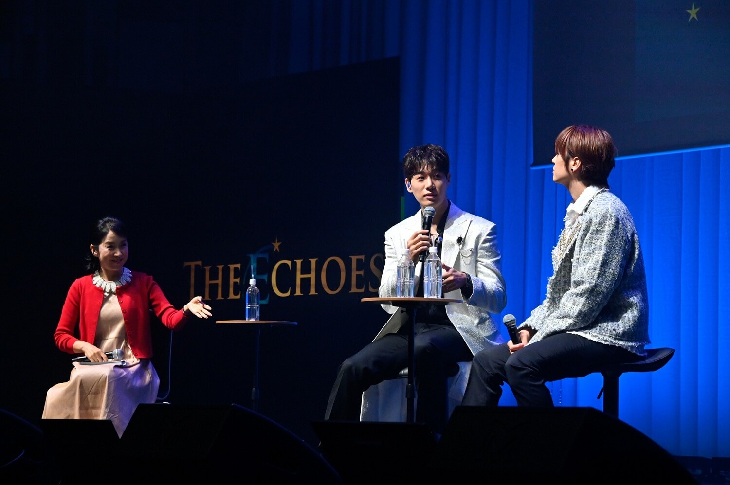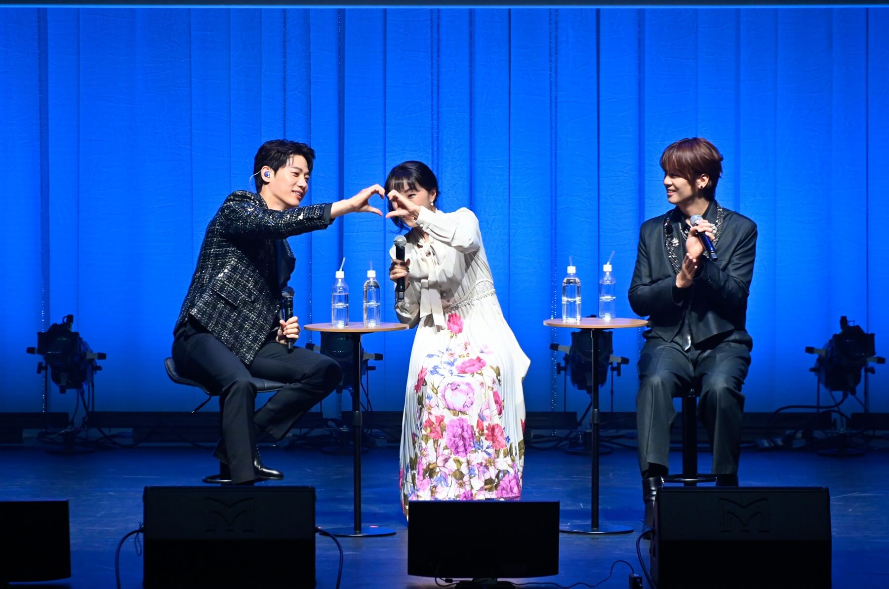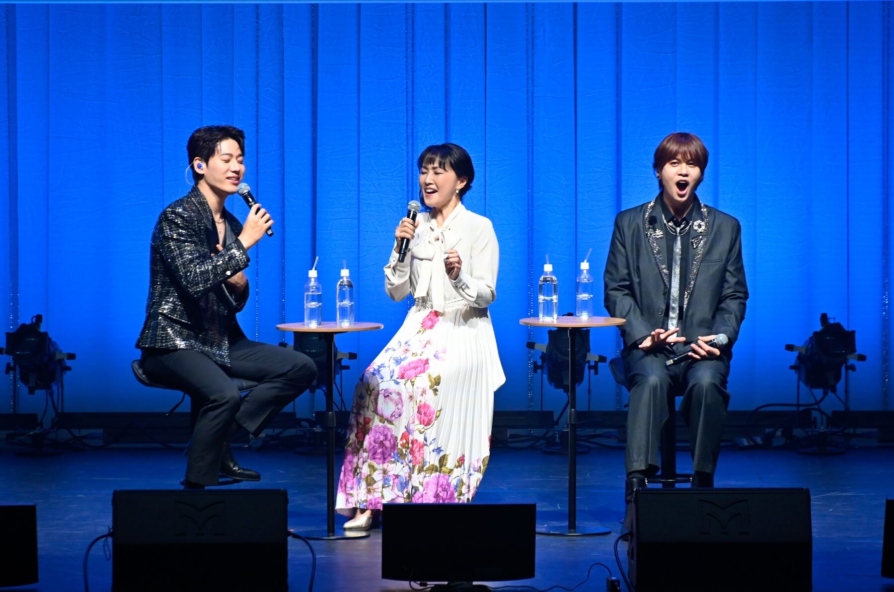 (写真右から)浦井健治さん、キム・ソンシクさん、MC/キム・テイさん10月11日は、マチネとソワレの2公演。マチネではソンシクさん、浦井さんが白系のジャケットを。ソワレではしっとりと大人っぽい黒系のジャケットを羽織って登場。リンクコーデが素敵です!