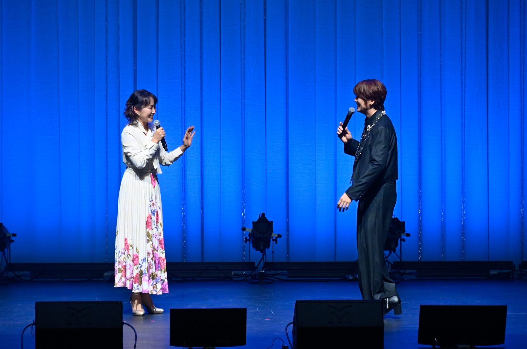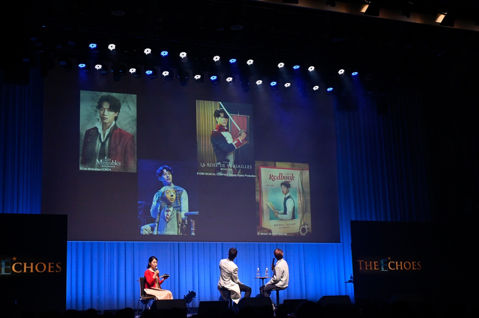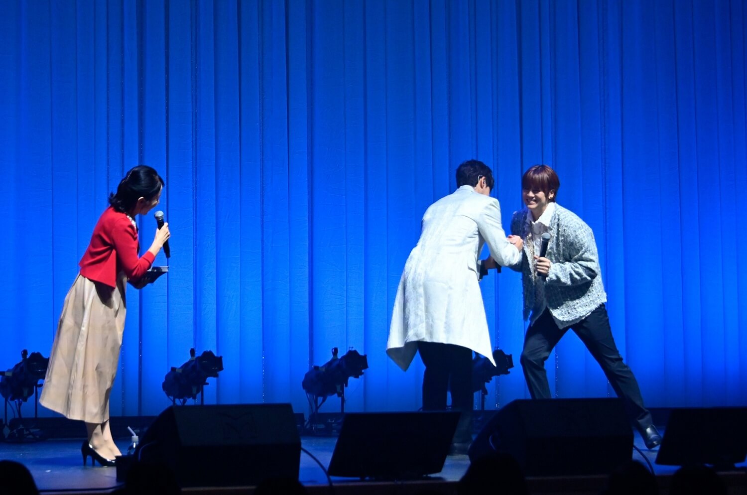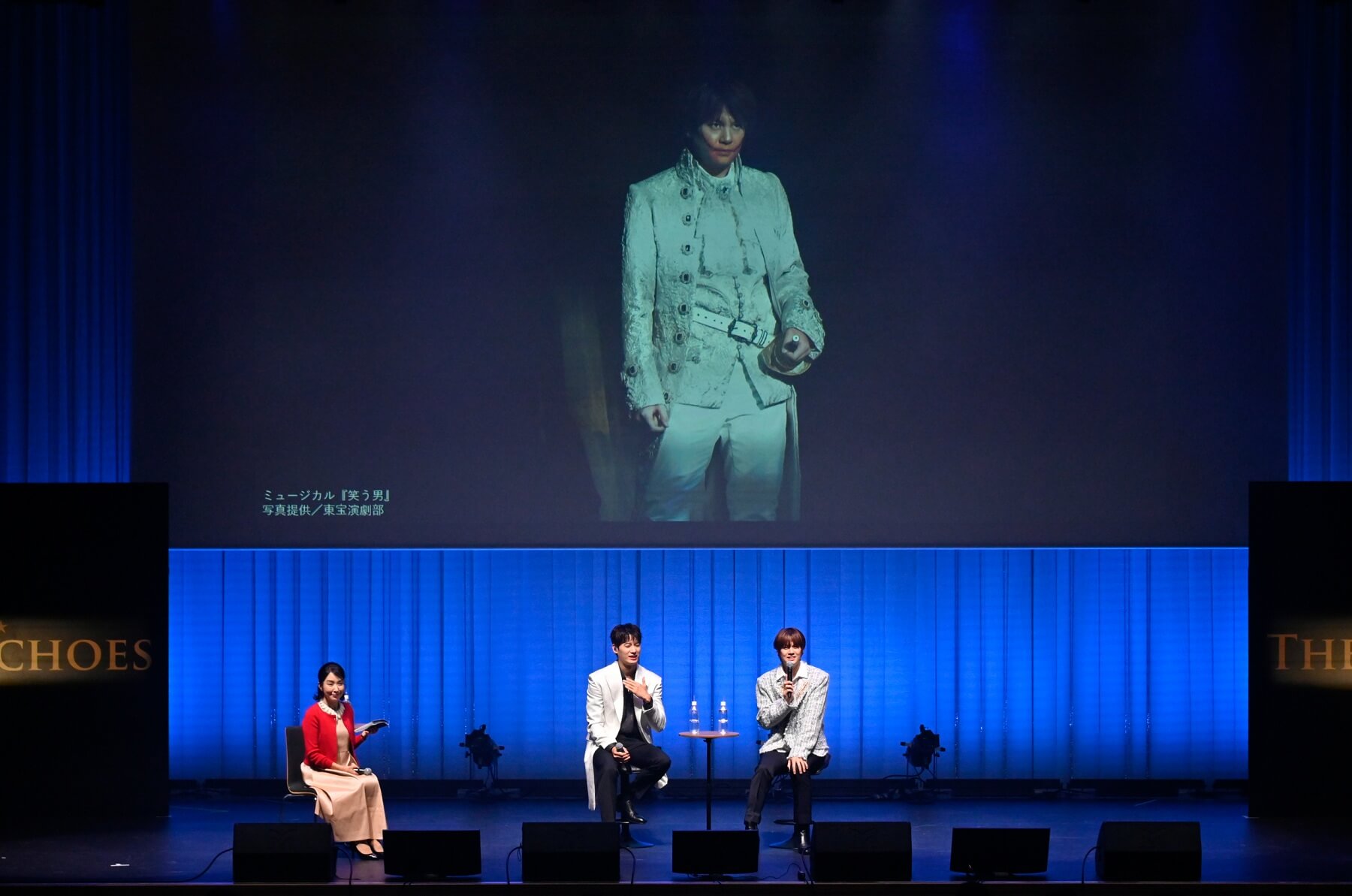 (写真右から)浦井健治さん、キム・ソンシクさん、MC/キム・テイさん10月11日は、マチネとソワレの2公演。マチネではソンシクさん、浦井さんが白系のジャケットを。ソワレではしっとりと大人っぽい黒系のジャケットを羽織って登場。リンクコーデが素敵です!