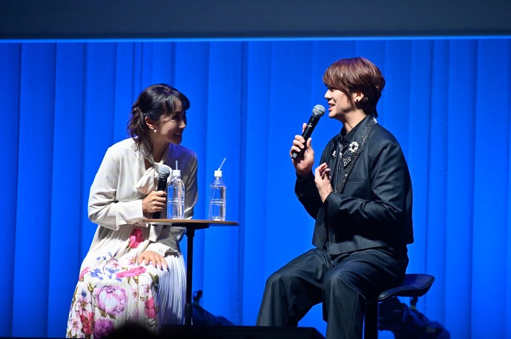 また、ソンシクさんから“ヒョン(お兄さん)”と呼ばれ、「弟ができた!『浦井お兄さん』です!」と無邪気(?)に喜ぶ様子がとてもほほえましかったです。ソンシクさんも「昨日のお兄さん(加藤さん)は『お兄さん…!』といったやさしく落ち着いた雰囲気の方でしたが、今日は自由でノリノリ、テンションの高いお兄さん。僕も一緒にテンションがあがってしまいます」と茶目っ気たっぷりに語ります。さらに椅子をクルーンと回して背後のスクリーンをニコニコしながら眺めるなど、リラックスした雰囲気。MCのキム・テイさんが「どこに飛んでいくかわからない自由なおふたりです」と突っ込むと会場も爆笑に包まれました。